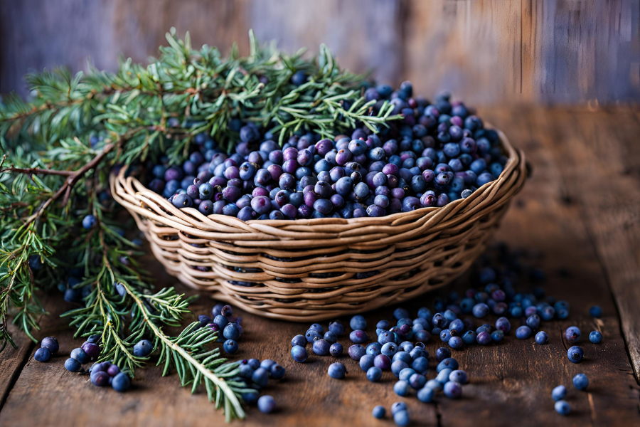 ジュニパーベリーはジンの製造に使われる代表的なボタニカル素材の一つで、杜松果(とうしょうか)とも呼ばれます。見た目としては松の木にブルーベリーが生えているのを想像すると近いでしょうか。