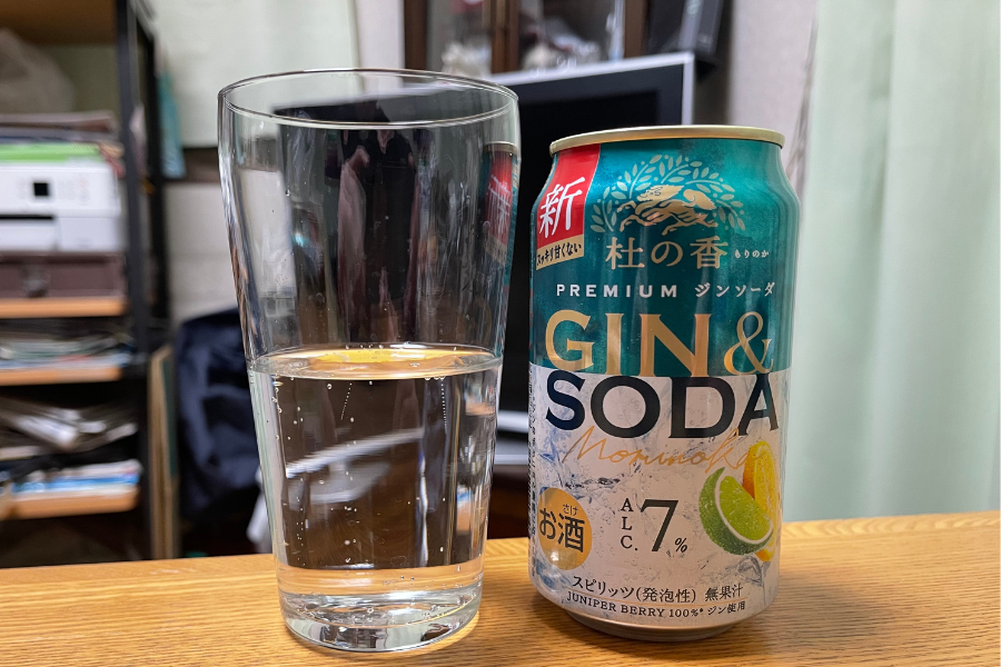 というわけで、テキトーに購入したのは「KIRIN PREMIUM ジンソーダ杜の香」。(もりのか、と読みます)